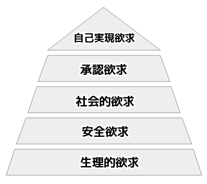 人は、5つの欲求に分類されていて、下から順番に欲求が満たされていくもので、