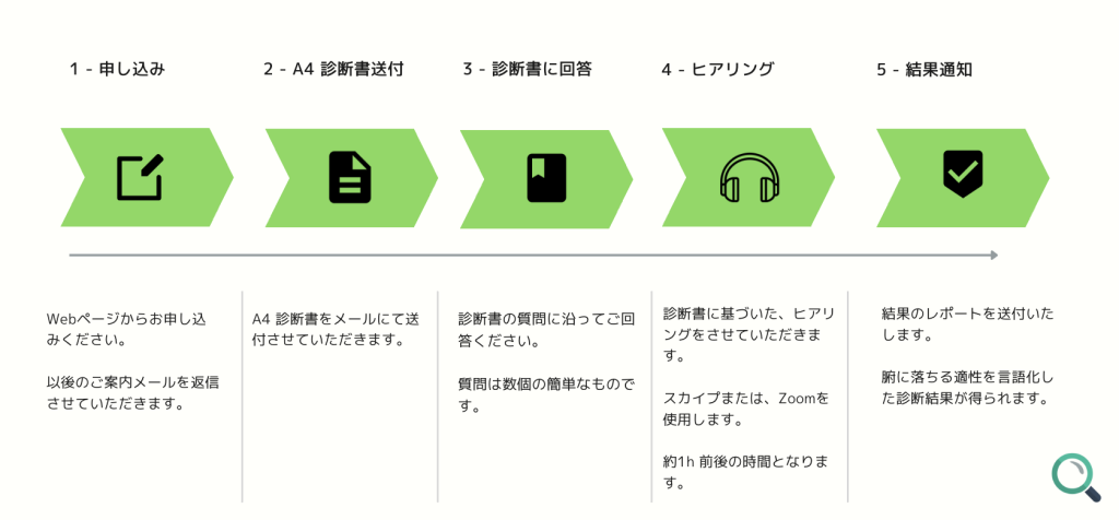 申し込み後、診断テストの案内が送信されます。テストは、A4紙一枚で回答できる簡単な設問です。
